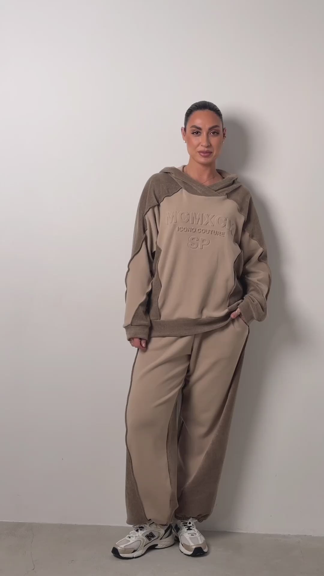 Nowoczesny komplet dresowy w stylu premium, który łączy wygodę z dopracowanym designem. Dwukolorowe wstawki, ozdobne przeszycia „na zewnątrz” i tłoczony napis na bluzie tworzą mocny, modowy efekt. Idealny na co dzień – do sneakersów, na podróż, spacer i miejski look